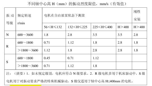 4.防爆電機(jī)不同軸中心高的振動值烈度限值表