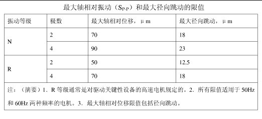 電動機(jī)的軸相對振動所采用的判據(jù)應(yīng)是沿測量方向的振動位移峰峰值。建議僅對有滑動軸承、額定功率大于1000kw的二極和多極電機(jī)測量軸相對振動,至于安裝軸測量傳感器的必要規(guī)定由制造廠和用戶事先協(xié)議確定。
