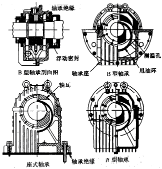 滑動(dòng)軸承作為防爆電機(jī)的主要部件,其開發(fā)設(shè)計(jì)及制造技術(shù)在近年來有了很大的發(fā)展。現(xiàn)已發(fā)展成為一個(gè)成熟的產(chǎn)品,并且已系列化、標(biāo)準(zhǔn)化、通用化,有專業(yè)的滑動(dòng)軸承生產(chǎn)廠。在防爆電機(jī)中使用的滑動(dòng)軸承主要有以下幾種類型:A型端蓋式球面滑動(dòng)、B型端蓋式球面滑動(dòng)、座式球面滑動(dòng)軸承。