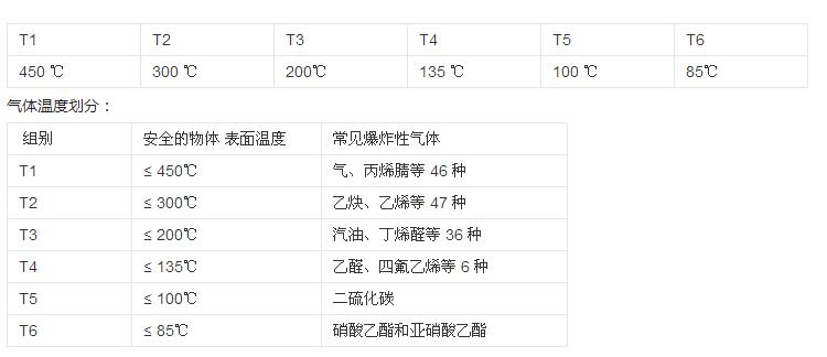 6、溫度組別:可燃氣體的引燃溫度電氣設(shè)備的最高溫度。
