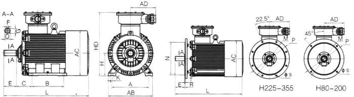 YBK2(YBK3)系列煤礦井下用隔爆型三項(xiàng)異步電動(dòng)機(jī)主要使用在采掘面以下,視為煤礦井下采掘工作面機(jī)械設(shè)計(jì)的專(zhuān)用電機(jī),機(jī)座有鋼板焊接形成,風(fēng)罩,接線(xiàn)盒、絕緣結(jié)構(gòu)采取加強(qiáng)措施。YBK2系列煤礦井下用隔爆型三項(xiàng)異步電動(dòng)機(jī)按GB3836.2《爆炸性氣體環(huán)境用電氣設(shè)備 第2部分 隔爆型“d”》的規(guī)定,制成隔爆型,防爆標(biāo)志為“Exdl”。主要用于煤礦井下惡劣工作環(huán)境。YBK2系列煤礦井下用隔爆型三項(xiàng)異步電動(dòng)機(jī)除機(jī)座、風(fēng)罩、接線(xiàn)盒有特殊要求外,其余如果氣體性能、安裝尺寸、額定功率等均與YB2系列電機(jī)相同。