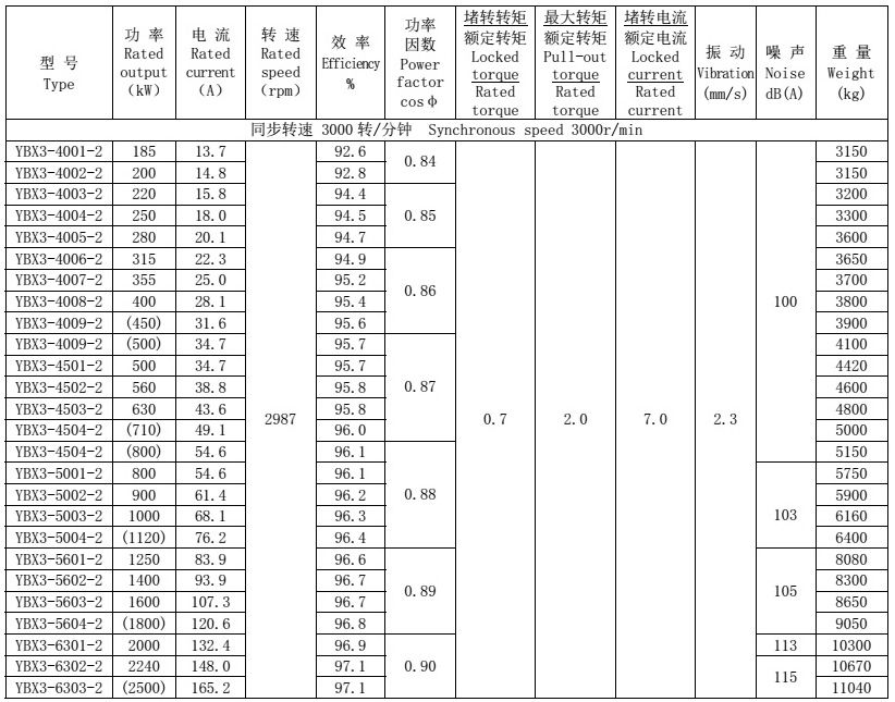 型譜中帶有括號的規(guī)格電機(jī)溫升按F級(105K)考核,其余規(guī)格可按B級(80K),如要求括號中功率規(guī)格的溫升按B級(80K)考核,型號應(yīng)當(dāng)向下順延一檔。