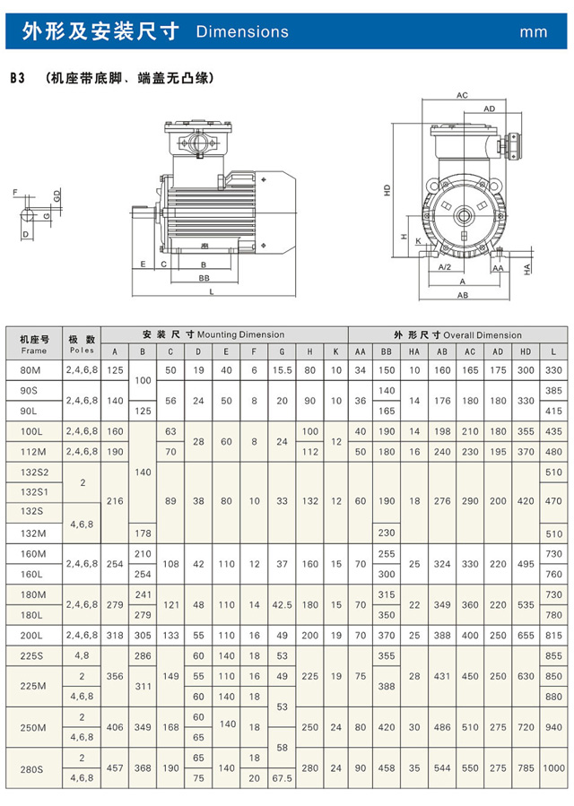 防爆電機(jī)型號:YBX3/YBX4(三級或二級能效)