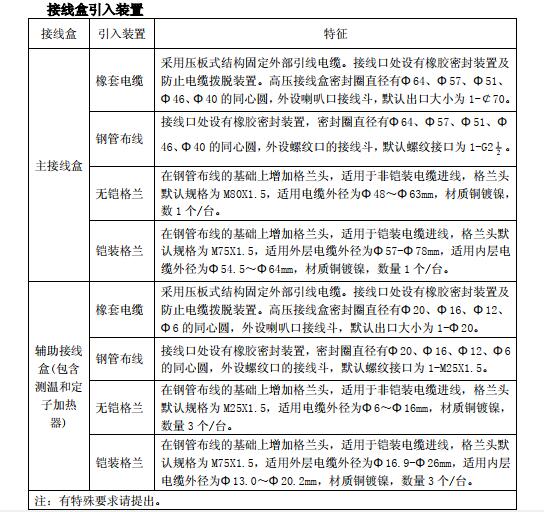 □輔助接線盒進(jìn)線口形式:橡套、鋼布。