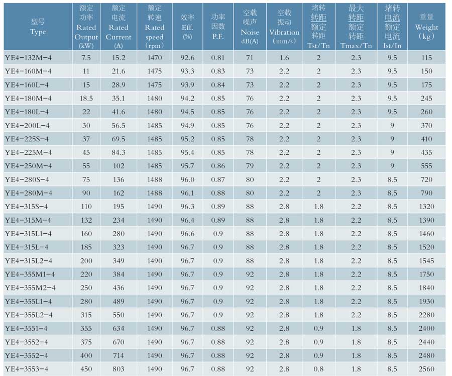 YE4系列電機(jī)部分技術(shù)參數(shù)